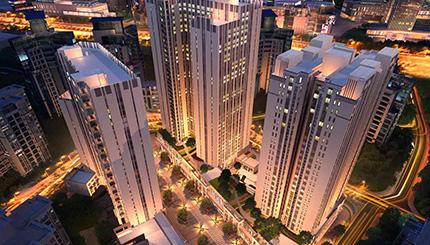 工程地址位于重慶市渝北區(qū)渝通賓館附近,總建筑面積12萬平方米,結(jié)構(gòu)類型為剪力墻結(jié)構(gòu),由5棟綜合商業(yè)樓、4棟高層商業(yè)住宅樓(地上28層及15層,地下2層)和部分附屬商業(yè)及地下車庫組成,高層主要為28層,最大建筑高度約為85.9米。